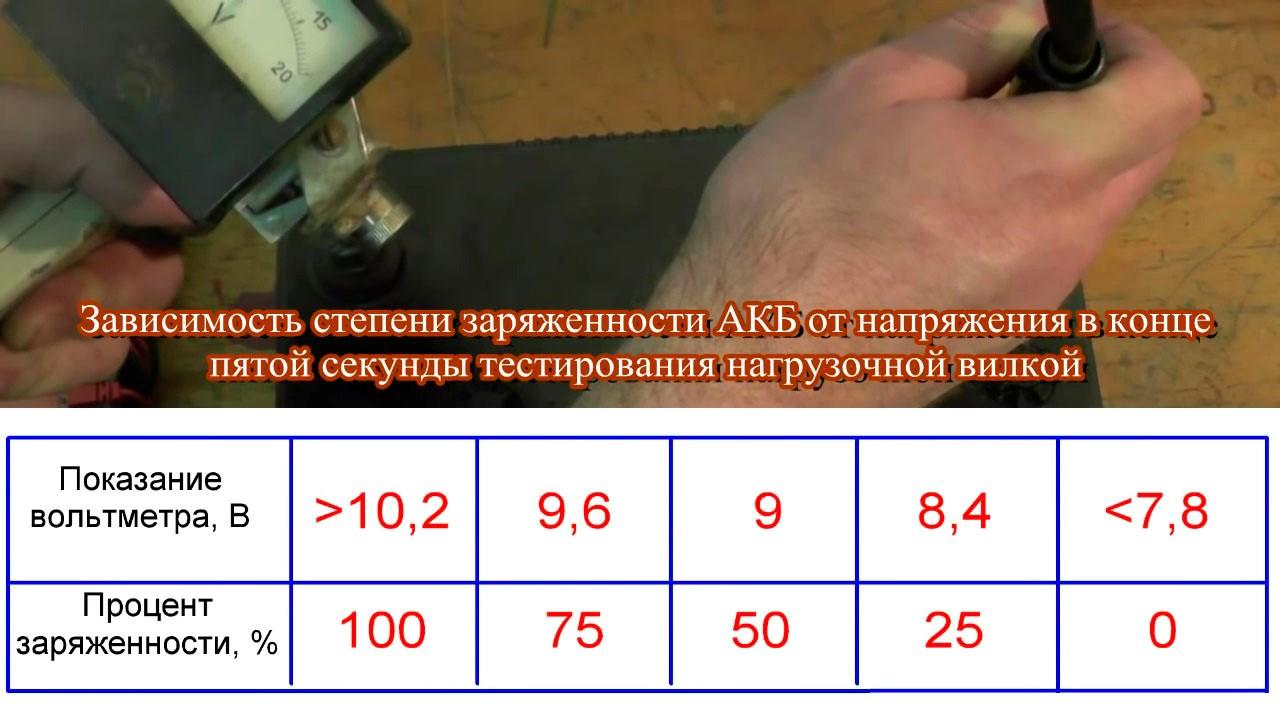 Подытожим вышесказанное. По напряжению на клеммах АКБ можно оценить: