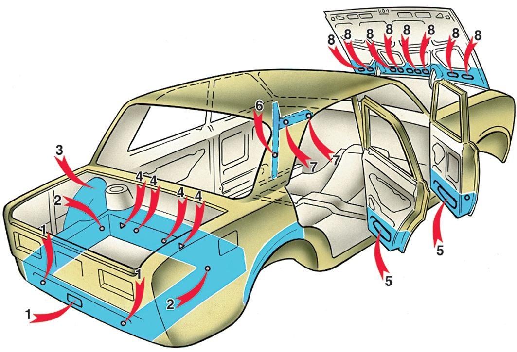 Перечень слабых мест кузовов автомобилей ВАЗ 2101, 2103, 2106, 2105, 2107