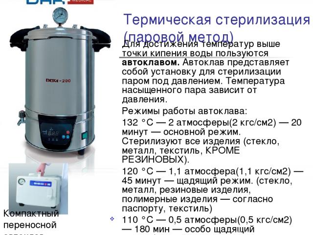 Режимы стерилизации при паровом методе