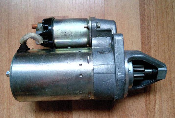 К стальному корпусу стартера ваз 2110 приклеены четыре постоянных магнита, изнутри они дополнительно прикреплены развальцованной алюминиевой втулкой. Корпус и крышки стартера стянуты двумя шпильками. На валу привода установлена муфта свободного хода (обгонная муфта) с приводной шестерней. Она передает крутящий момент только в одном направлении – от стартера к двигателю ваз 2111, разобщая их после пуска двигателя ваз 2111. Это необходимо для защиты редуктора и якоря стартера от повреждения из-за чрезмерной частоты вращения. Тяговое реле ваз 2110 служит для ввода шестерни привода в зацепление с зубчатым венцом маховика коленчатого вала двигателя и включения питания электродвигателя стартера. При повороте ключа зажигания в положение «стартер» напряжение подается на обе обмотки тягового реле (втягивающую и удерживающую). После замыкания контактов тягового реле втягивающая обмотка отключается.