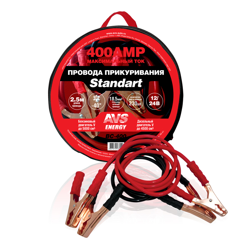 Провода SA-400-01 предназначены для запуска двигателей легковых автомобилей и коммерческого транспорта. Провода имеют длину 3,5 метра, рассчитаны на пусковой ток 400 А. Провод имеет 135 медных жил, диаметр провода 9 мм, площадь сечения 15,9 мм. кв. Рабочая температура от +80 до -40 градусов. Зажимы с широким углом захвата.