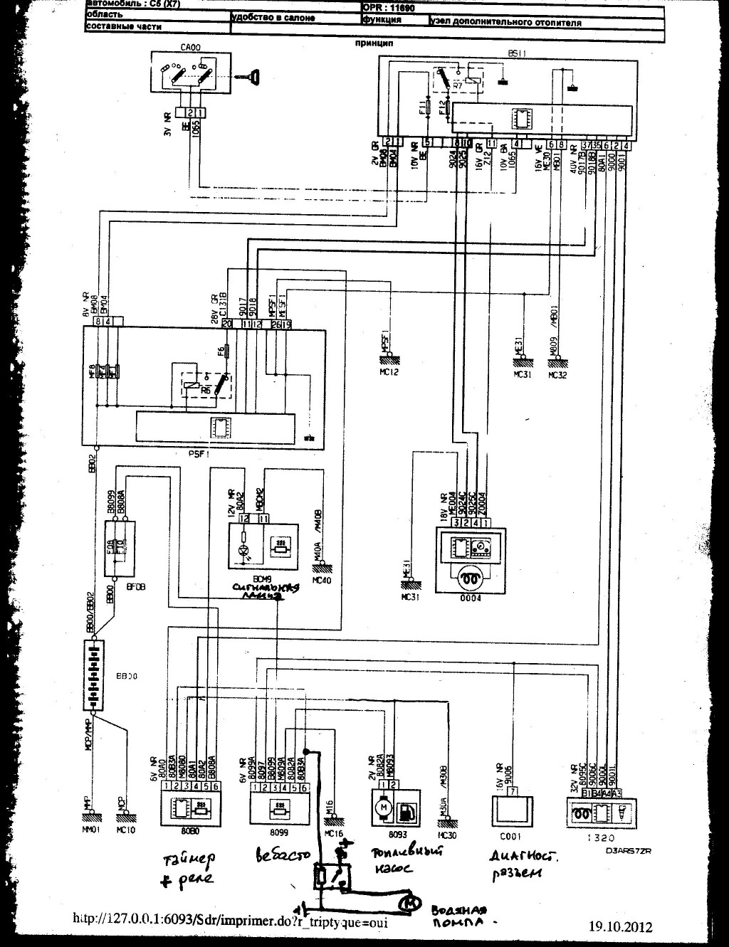 Webasto Thermo 50. Принципиальная электрическая схема подогревателя.