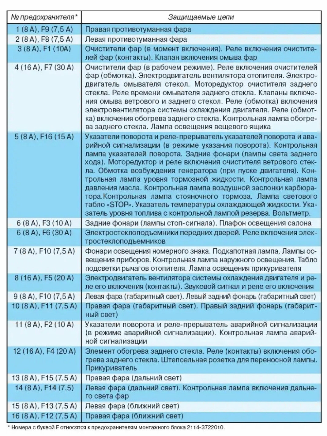| 1 | 16 | Освещение салона, Звуковые сигналы, Патрон контрольной лампы, Прикуриватель, Лампы стоп-сигнала |
