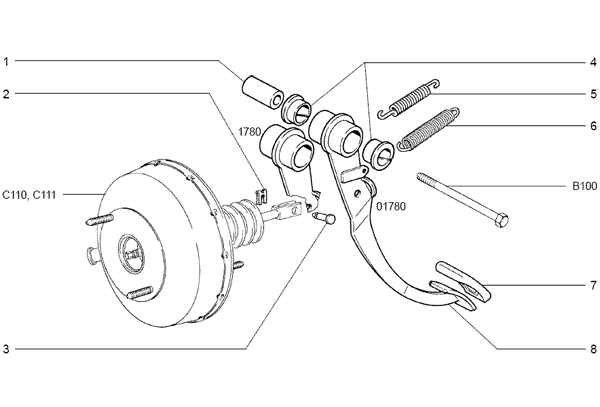 Теперь более подробно об элементах данной системы. Итак, педаль, на которую жмет водитель, расположена на одной оси с педалью управления сцеплением. Чтобы обеспечить возможность возвращения ее в исходное положение – она подпружинена.