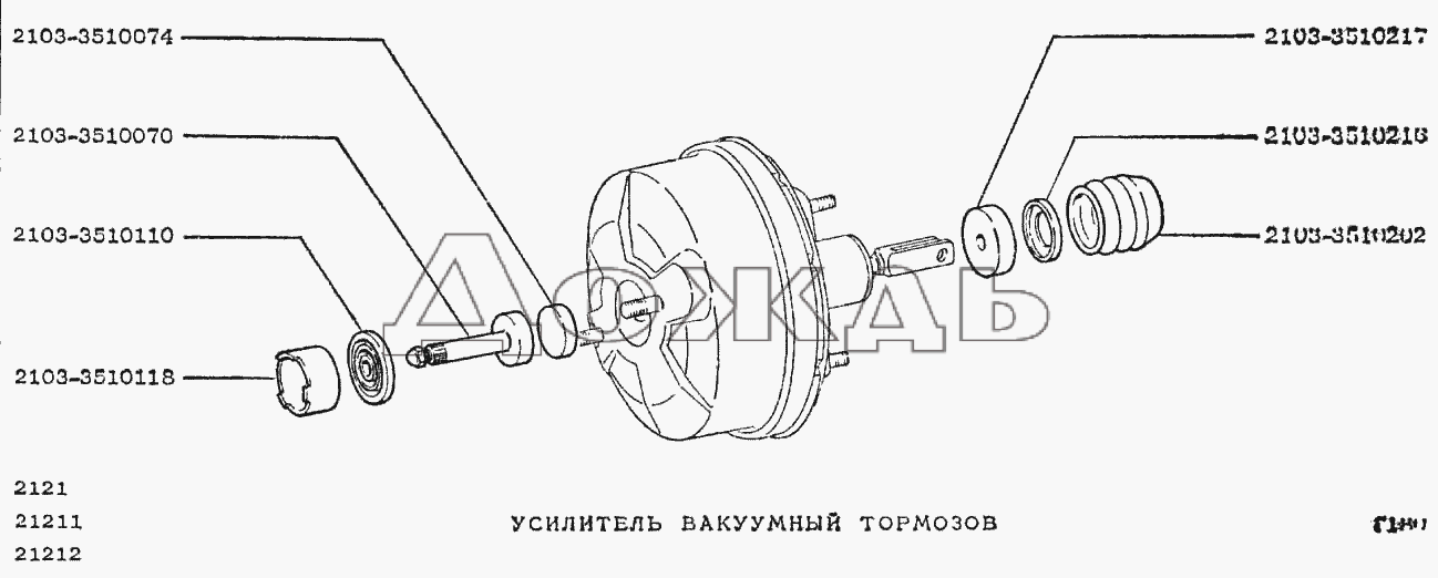 К педали подсоединен шток, связанный с усилителем. Устройство вакуумного усилителя тормозов ВАЗ-2107 довольно интересно, представлено оно на рисунке: