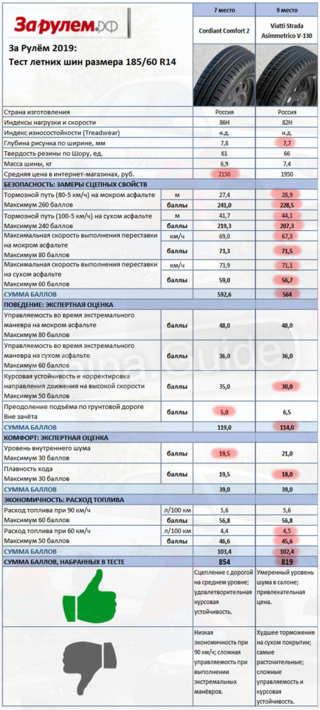 Напомним, что в первом тесте издания За рулём 2019 года принимали участие летние шины размера 185/60 R14, в то время как во втором соревновались покрышки размерности 205/55 R16.