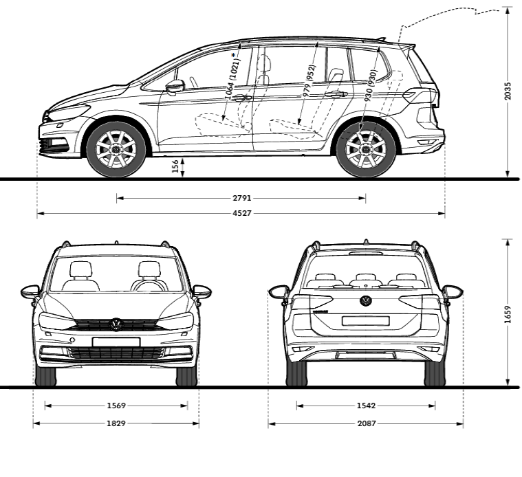 | Модификации | Длина, мм | Ширина, мм | Высота, мм | Колея передняя/задняя, мм | Колесная база, мм | Дорожный просвет (клиренс), мм | Объем багажника, л |