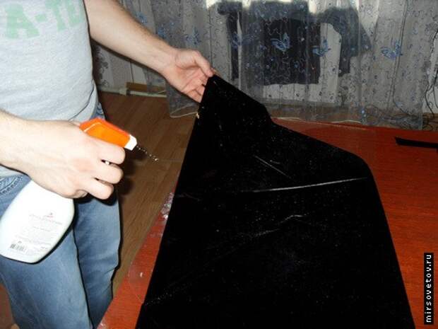 Если прозрачного шампуня дома не оказалось, то можно воспользоваться прозрачным жидким мылом или средством для мытья посуды. - Приготовьте пульверизатор, желательно с функцией накачивания воздуха. Можно, конечно, взять и емкость от очистителя для стекол, но вам удобнее будет работать с тем видом распылителя, который вначале закачивает воздух, а потом он будет распыляться от простого нажатия кнопки или рычага. Такие пульверизаторы используются при работе в саду для опрыскивания саженцев.