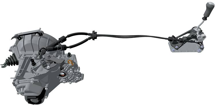 В предыдущих конструкциях для включения передачи использовалась кулиса. Если сказать очень коротко, то кулиса — это металлический рычаг. При его использовании вибрация от двигателя передавется на рычаг переключения передач. Включение и выключение были жесткими. Все перечисленные и прочие недостатки исчезли, как только в коробке была применена тросовая конструкция. Переключения стали четкими. Ход рычага переключения скоростей существенно сократился.