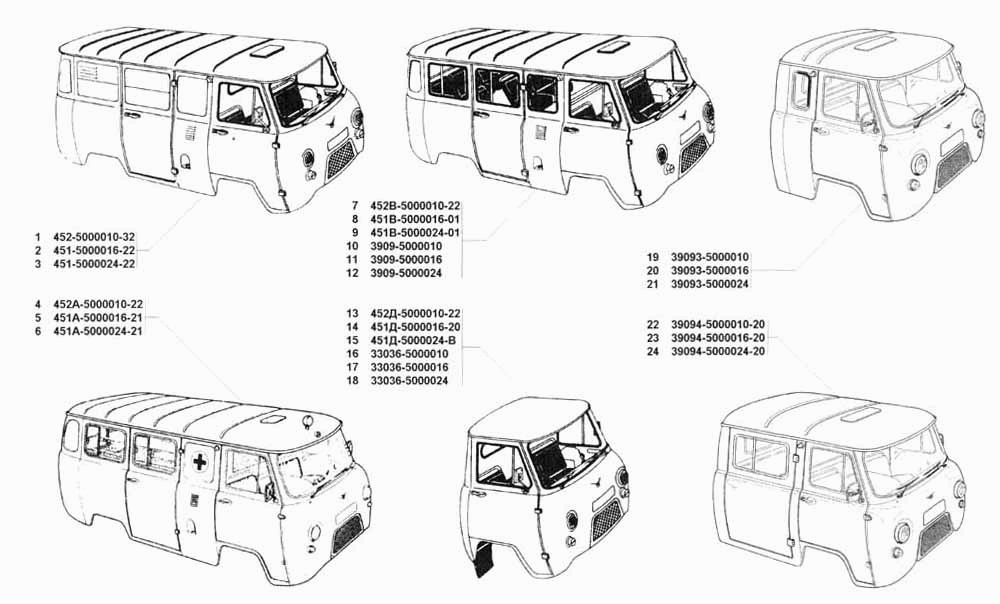 Самым первым прототипом был всем известный кузов УАЗ-452, имевший заднюю дверь.