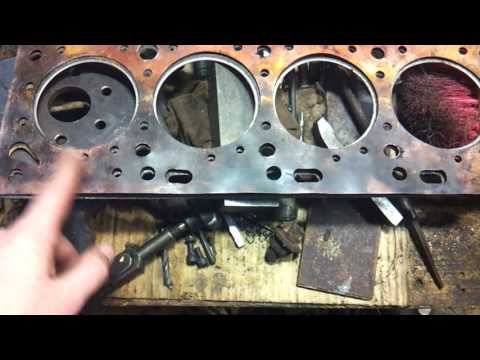 - Убедитесь, что сопрягаемые поверхности на головке цилиндров и блоке чистые. Удалите весь старый уплотнительный материал и отложения. Будьте осторожны при использовании скребка, так как он может легко повредить алюминиевые поверхности головки и блока. Незначительные царапины можно удалить наждачной шкуркой или стальной мочалкой. Глубокие выемки потребуют механической обработки для поддержания уровня сопрягаемых поверхностей. В случае блока это может потребовать снятия двигателя с автомобиля и удаления шпилек головки блока цилиндров.