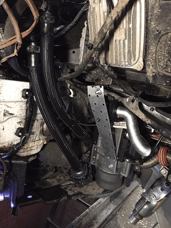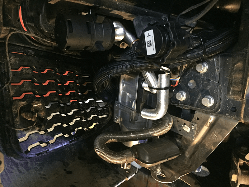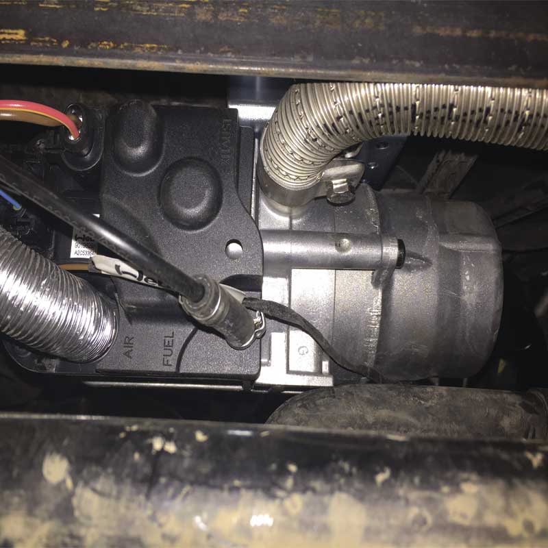 Маршрут воздуховода определяет, где можно установить нагреватель. Некоторые обогреватели, но не Webasto Air Top 2000S, необходимо устанавливать горизонтально или вертикально. Установка обогревателя рядом с топливным баком и батареями упростит жизнь, и Тоби убедился, что расположение обогревателя позволяет прокладывать воздуховоды без острых углов — каждый изгиб на 90 ° теряет 5% тепла.
