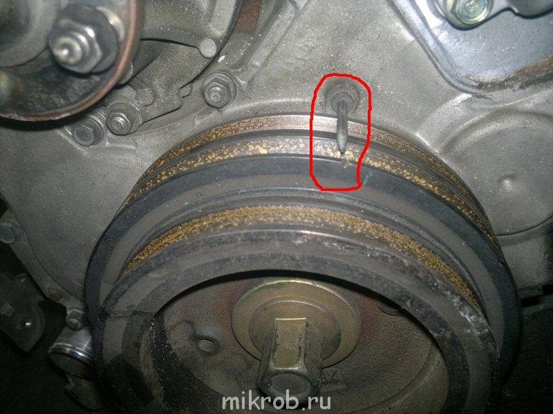 Для начала, требуется установка метки зажигания. Для этого на шкиве коленчатого вала имеется насечка, которую необходимо совместить с одним из отливов на лобовой крышке. Всего их три, каждый из них соответствует марке бензина, который используется.