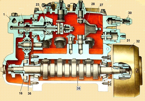 В рядных насосах горючее подается к форсункам двигателя по определенному алгоритму с помощью механического привода и кулачков. Последние управляют плунжерной парой и обеспечивает ее перемещение.