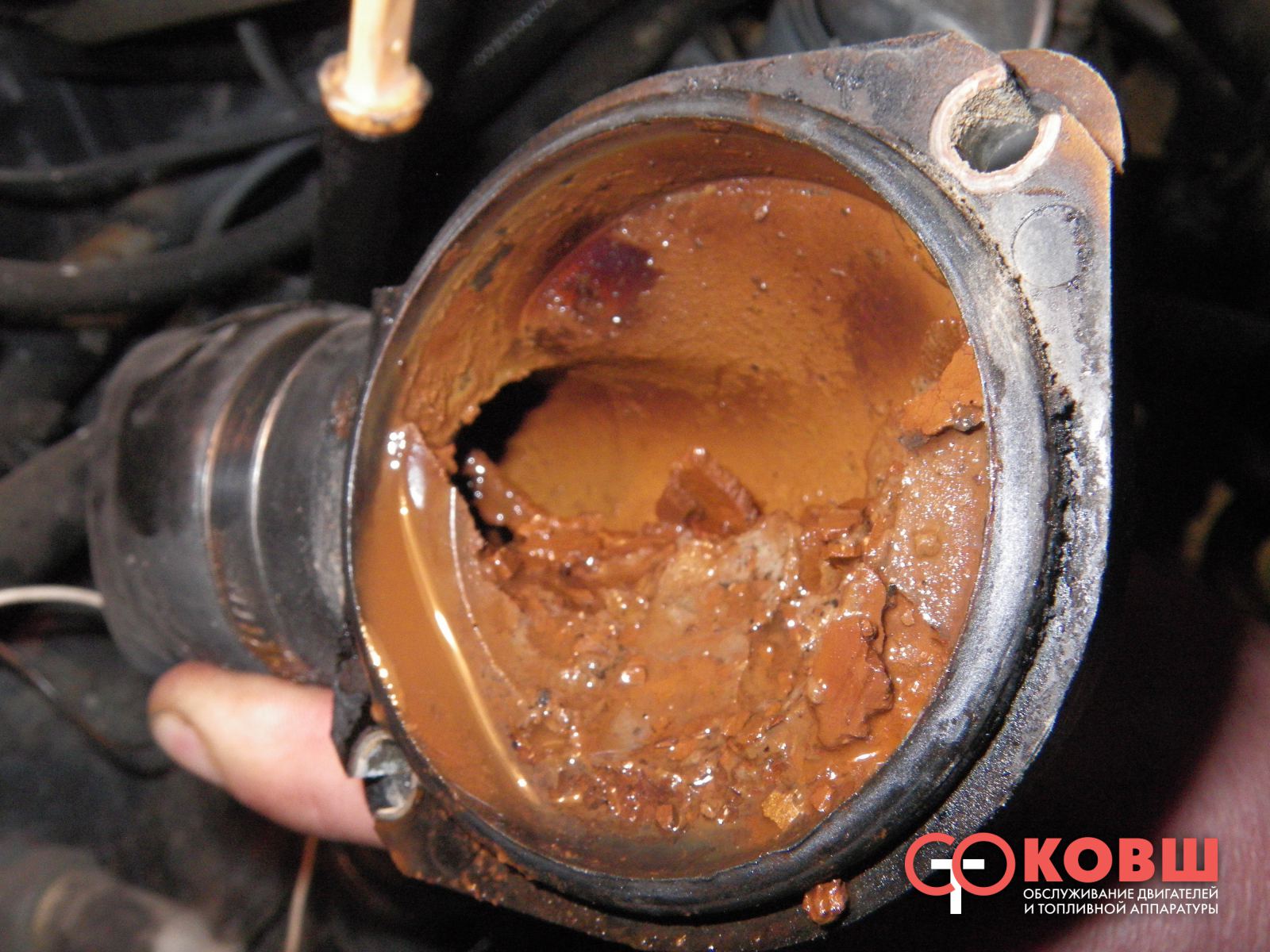 Тогда она приобретает коричневый цвет и начинает пахнуть горелым. Проверить это можно, опустив в расширительный бачок специальный щуп и осмотрев его на предмет наличия налета.