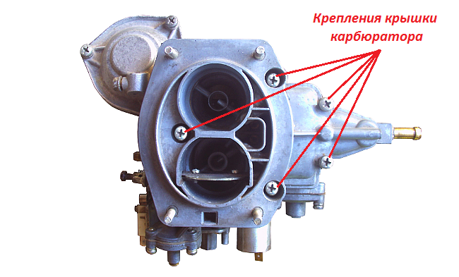 В корпусе карбюратора (под его верхней крышкой) имеется поплавковая камера, куда нагнетается топливо.