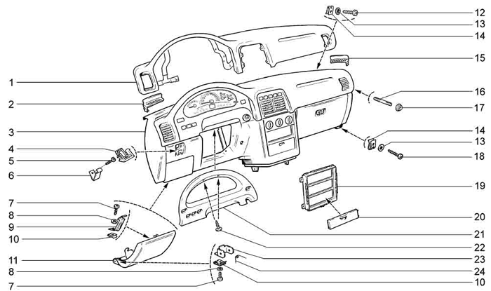 - позиция 18, как правило остается в резерве, а в автомобилях, оборудованных подушками безопасности на это месте стоит лампа срабатывания их датчика.