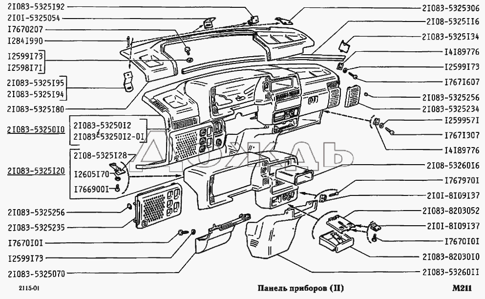 Приборная панель ВАЗ 2110 выполнена в виде комбинации приборов, контрольных ламп, а в некоторых модификациях с возможностью размещения бортового компьютера. Традиционно, пластик, из которого панель изготовлена, не самого высокого качества, поэтому в ходе эксплуатации и перегрева не исключается ее деформация, влияющая не столько на внешний вид, сколько на работоспособность приборов.