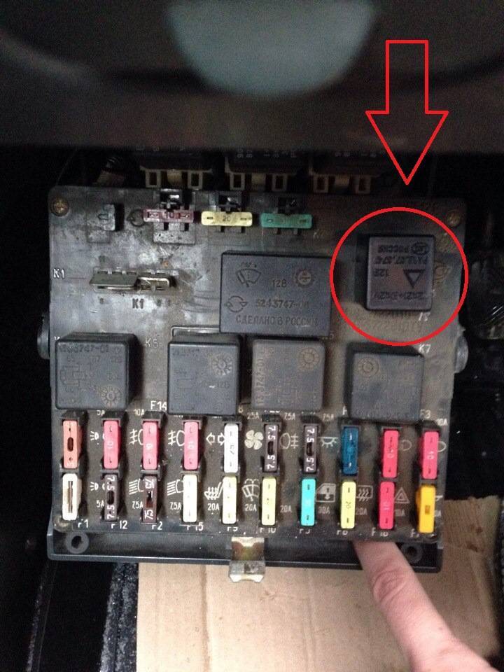 Найти на «десятке» этот блок довольно просто, он распологается рядом с рычагом открывания капота. Реле-прерыватель располагается в гнезде К-3.