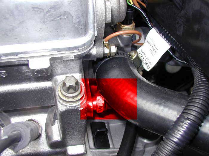 Сначала необходимо отыскать датчик, который находится на патрубке между ГБЦ и термостатом.