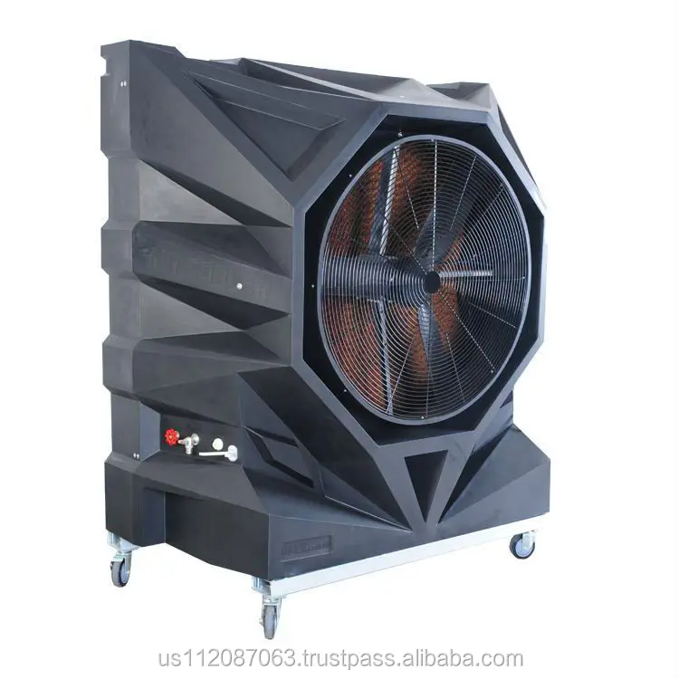 Воздухоохладители используют естественный процесс испарения воды для охлаждения входящего горячего воздуха и используют мощный вентилятор для равномерного распределения только что охлажденного воздуха. Температура сухого воздуха может значительно понизиться, когда жидкая вода превращается в водяной пар (путем испарения).