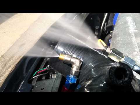 Вода/метанол должны быть впрыснуты выше 60 фунтов на квадратный дюйм для правильного распыления в двигателе. Давление ниже этого уменьшит охлаждающий эффект, поскольку более крупные капли, выходящие из насоса низкого давления, уменьшат общую площадь поверхности и практически не приведут к увеличению производительности.