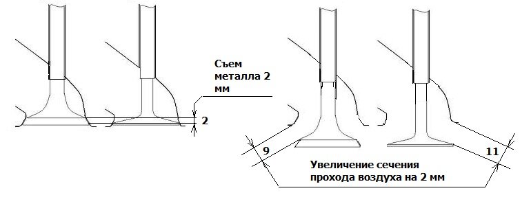 Все просто: количество воздуха (или топливовоздушной смеси) – одинаковое, а скорость – разная. Соответственно, там, где скорость ниже, отверстие шире, а закрывающая его тарелка – больше в диаметре.