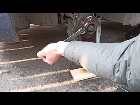 Прежде чем пытаться снять колесную шпильку, вы должны сначала ослабить гайки с помощью храповика, прежде чем поднимать автомобиль домкратом и надежно устанавливать его на подставки. Затем с помощью больших метрических головок извлеките шпильку колеса и осторожно снимите колесо.