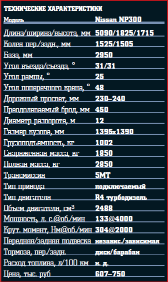 Технические характеристики Nissan