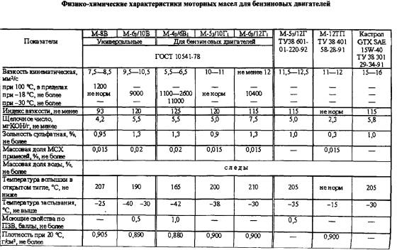 Марки моторных масел