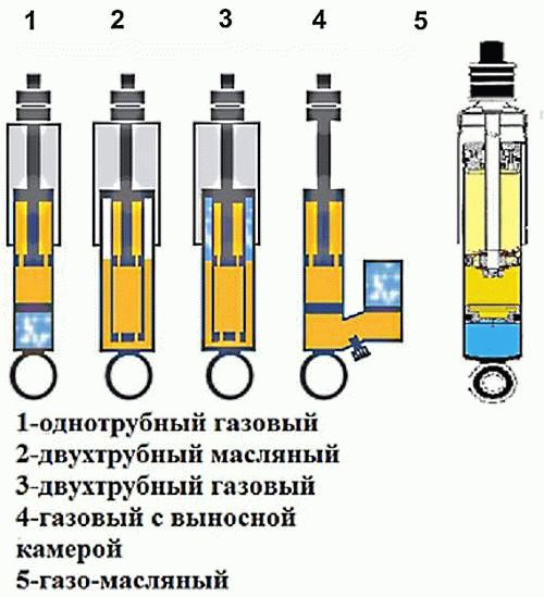 Начнем с того, что сегодня существует несколько типов амортизаторов, среди которых можно выделить наиболее распространенные и повсеместно используемые: