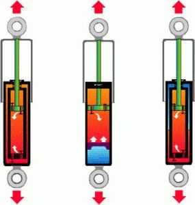 Особенно это касается двух самых основных типов амортизаторов — масляных и газомасляных, как однотрубных, так и двухтрубных. Дело в том, что рабочая жидкость, которая принимает кинетическую энергию сжатия и впоследствии выделяет тепло в атмосферу (а именно на этом и основан принцип действия практически всех амортизаторов, в том числе и газовых), может быть распределена по камерам неравномерно и находиться не там, где нужно для нормальной работы устройства.