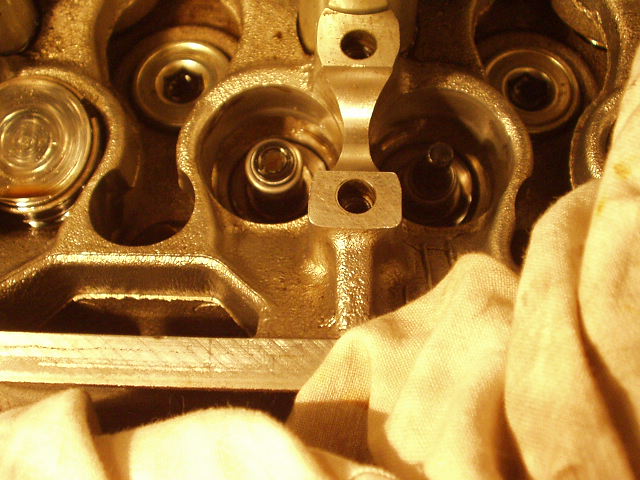 Каждый клапан имеет два держателя, которые выглядят вот так. Гребень входит в круглую канавку на штоке клапана.