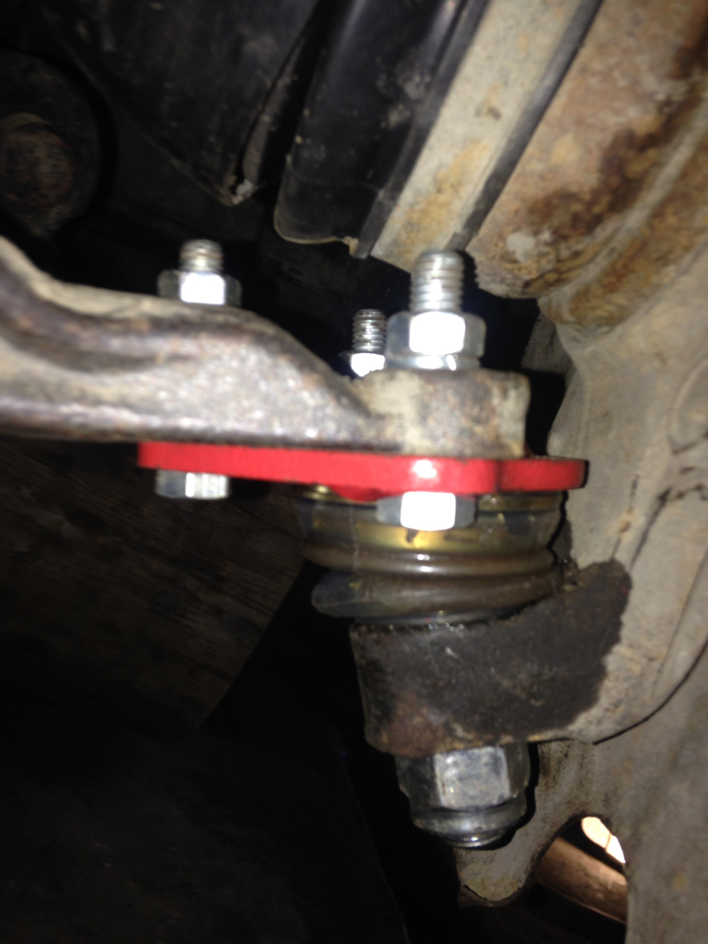 Когда шины оторваны от земли, каждый нижний шаровой шарнир совершает некоторое движение из стороны в сторону, когда я кладу руки в положение на 12 и 6 часов на шине и раскачиваю ее вперед и назад.Когда я покачиваю шину, я вижу движение примерно на 1 мм. Когда шины находятся на земле, индикаторы на нижних шаровых опорах не утоплены. Фактически, они выступают толщиной с небольшой наконечник отвертки.