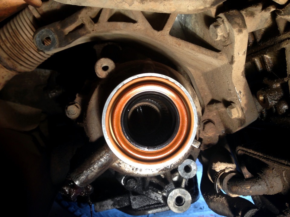 - Установите обойму с сальником на место и тщательно уплотните при помощи соответствующей опрессовочной оправки.