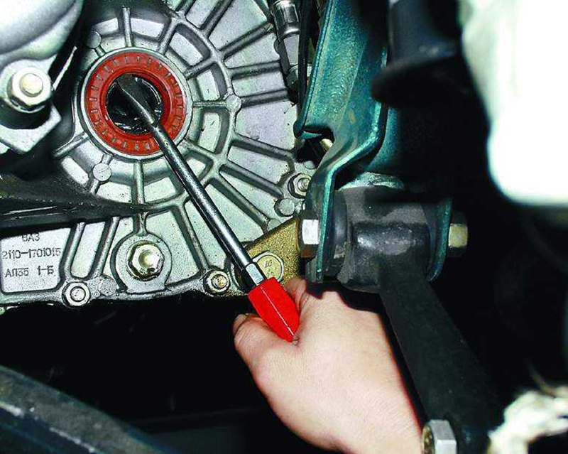 д. Далее нужно запрессовать новый элемент. Для запрессовки подойдет пробка от пластиковой бутылки, о которой говорилось выше. Часть пробки вырезается изнутри, затем туда вставляется новый сальник штока. После деталь запрессовывается на место, пробка убирается. Затем производится обратная сборка. Обратите внимание, после того, как новый сальник установлен и все собрано, нужно также провести дополнительные регулировки. Дело в том, что в салоне автомобиля произойдет смещение настроек селектора КПП. Также сбиваются настройки и в результате снятия карданчика. Если не выполнить регулировки, это становится причиной проблем с переключением передач. - Если просто, винт на «13» объединяет селектор выбора передач и сам карданчик. Причем он является не только фиксирующим, но и регулировочным. Важно отрегулировать его положение так, чтобы передачи включались мягко и плавно, а также было выставлено нормальное положение ручки коробки переключения.
