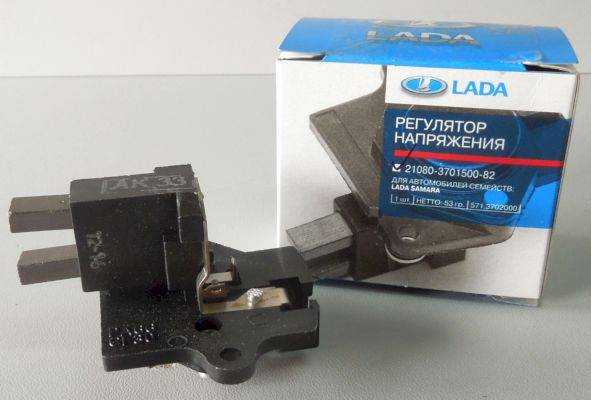 - На ВАЗ 2114 трехуровневый регулятор напряжения, который совмещен со щеточным узлом, представляющий собой неразборное устройство. Реле-регулятор находится в металлическом корпусе. Щетки передают напряжение от регулятора к обмотке ротора.