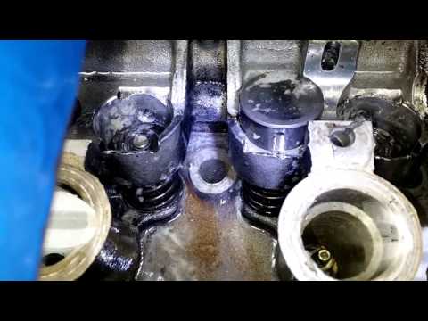 После притирки отшлифовать клапаны. Затем тщательно очистите и продуйте головку блока сжатым воздухом, чтобы в каналах, закрытых клапанами, и в камерах сгорания не осталось абразивных частиц.