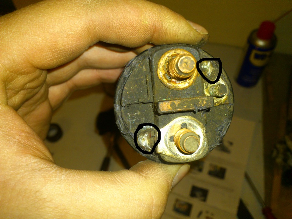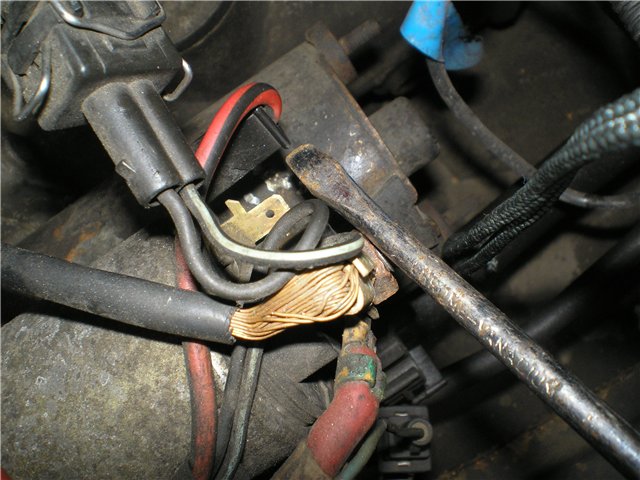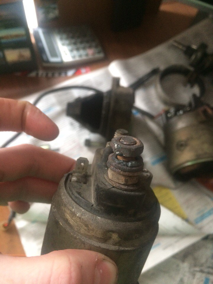 - плохой контакт и поломка провода от клеммы втягивающего реле;