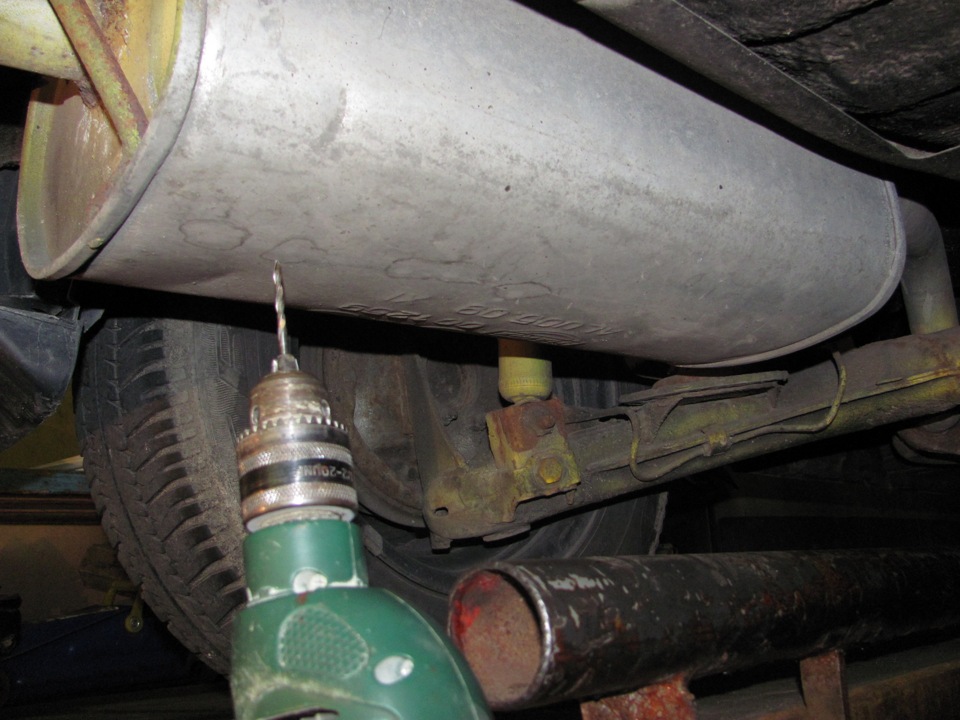 Сверлить нужно резонатор, а не сам глушитель. На дрель ставят тонкое 3-мм сверло по металлу.