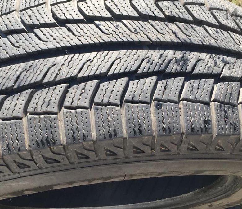 Первый день казалась валкой, поднял давление и она поехала как надо! Проверяйте давление после шиномонтажа. В шиномонжке тепло, а на улице холод и давление в шине из-за разницы температур снижается. Так что если не проверяли давление после монтажа — проверьте, может быть «сюрприз». Добавляю перед вторым сезоном. По результатам первого сезона ни одного шипа не потерял, износ минимальный (местами еще видны звёздочки вокруг шипа)..jpg)