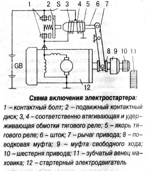 Поэтому в конструкцию последнего включено втягивающее реле, посредством которого и производится введение в зацепление шестерни стартера с маховиком во время пуска мотора и выведение ее из зацепления после запуска.
