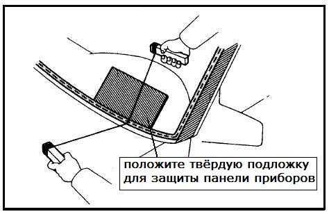 - Обклеить малярным скотчем по возможности участки обшивки в салоне или демонтировать отдельные элементы обшивки, дабы уберечь от повреждений и загрязнений клеем. Также отсоединить провода если таковые имеются (например, датчик дождя или подогрев парковки стеклочестителей).