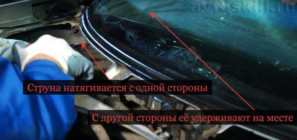 Метод среза клея-герметика при помощи струны