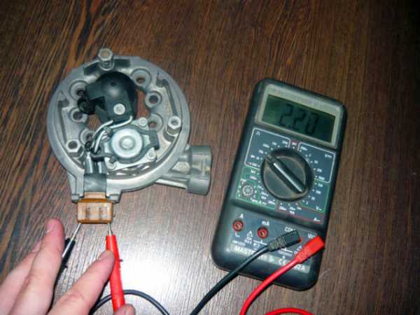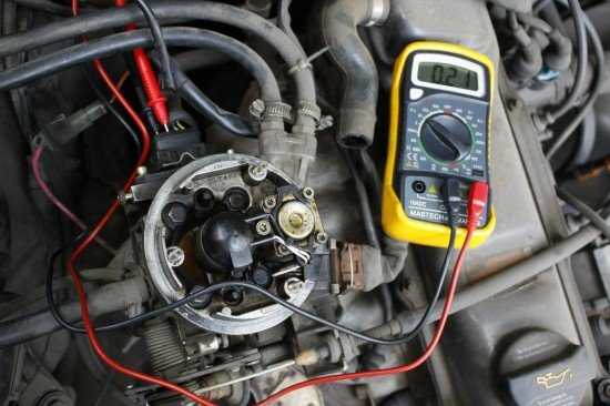Все готово к замеру напряжения, зажигание должно быть включено, берем цифровой тестер и замеряем напряжение между 1 и 2 лапкой ДПДЗ (отсчет контактов идет с права на лево, 3 контакт отсутствует), при этом несколько раз открываема и закрываем ДЗ чтобы точнее замерить напряжение оно возможно не всегда будет одно и тоже, ищем тогда средне арифметическое но оно все равно должно быть сильно приближено к напряжению 0.18-0.2в + — 0.2в, если это не так то вам этот метод, к сожалению, не подходит т.к. ваш ДПДЗ очень сильно изношен и регулировки придется производить по второму способу с помощь компьютера и других средств! Замерили и записали на бумажке, иначе пока будете чистить благополучно забудете значение.