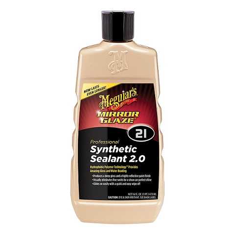 Из синтетических полиролей стоит выделить Synthetic Sealant Meguiars, состоящую из сложных гидрофобных полимеров, создающих приличный слой на ЛКП машины. Это покрытие способно удерживаться на авто два-три месяца, и не будет смываться с кузова (если не применять при мойке абразив).