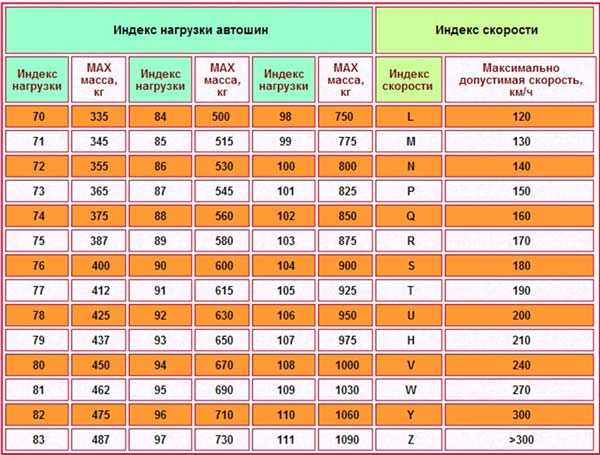 Индекс скорости и нагрузки шин: расшифровка, таблица