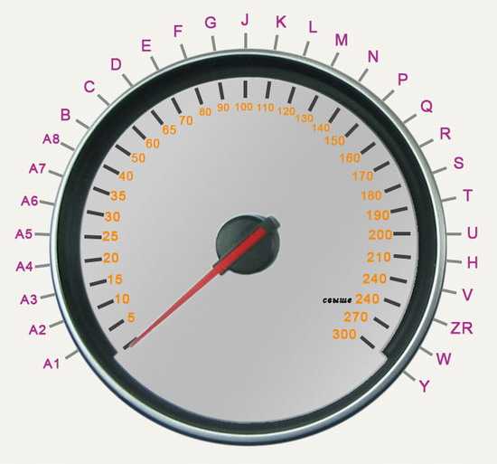 Каждый буквенный символ индекса скорости «привязан» к определенному скоростному пределу. Для того чтобы выяснить, какой скорости соответствует та или иная литера на боковой поверхности покрышки, следует обратиться к таблице индексов скорости.
