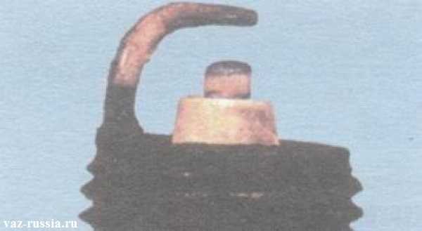 Если вы не понимаете когда нужно менять свечи в вашем автомобиле, то в таком случае посмотрите на фотографию чуть ниже, на которой очень чётко показана изношенная свеча, а именно на кончике электрода этой свечи присутствует некая закруглённость и черный налёт который так же называется отложениями, в данной ситуации автомобиль будет плохо заводиться в холодную и слишком влажную погоду, и ко всему этого расход у него будет так же увеличен, лечится это всё заменой свечей на новые.