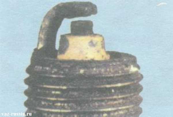 - Пропуски воспламенения, которые возникают из-за обедненной горючей смеси или недостаточной энергии искры. Из-за этого на электродах и изоляторе увеличивается слой нагара.